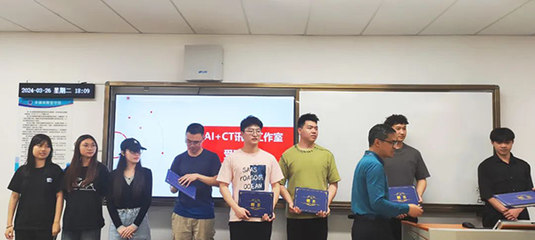 广州商学院现代现代信息产业学院教研室主任周云峰为工作室成员颁发了聘书,赋予他们正式身份。这一重要时刻标志着“AI+CT”威九国际工作室的正式启航。