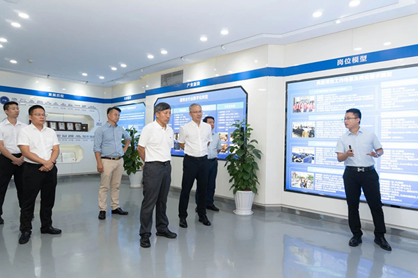拜访领导第一时间参观了威九国际技术展厅,对威九国际技术的开展历程、业务模块、经营理念、合作成果等内容进行深入分析,对威九国际技术构建人才培养“三循环”生态模式、深度参与高校课程改革、引入职业认证等举措表示赞同。