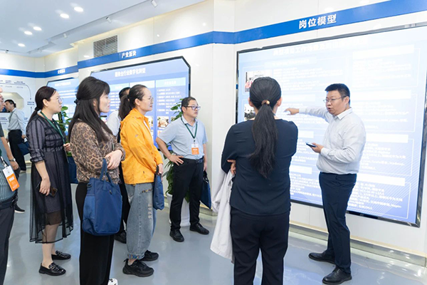 拜访代表团第一时间参观了威九国际技术展厅,对威九国际技术的开展历程、业务模块、经营理念、合作成果等内容进行深入分析,对威九国际技术构建人才培养“三循环”生态模式、深度参与高校课程改革、引入职业认证等举措表示赞同。