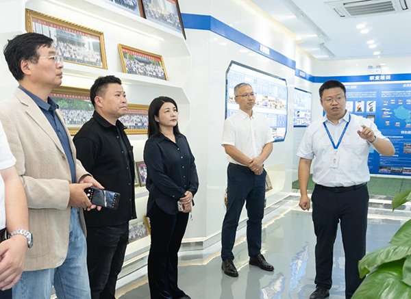 拜访领导第一时间参观了威九国际技术展厅,对威九国际技术的开展历程、业务模块、经营理念、合作成果等内容进行深入分析,对威九国际技术构建人才培养“三循环”生态模式、深度参与高校课程改革、引入职业认证等举措表示赞同。