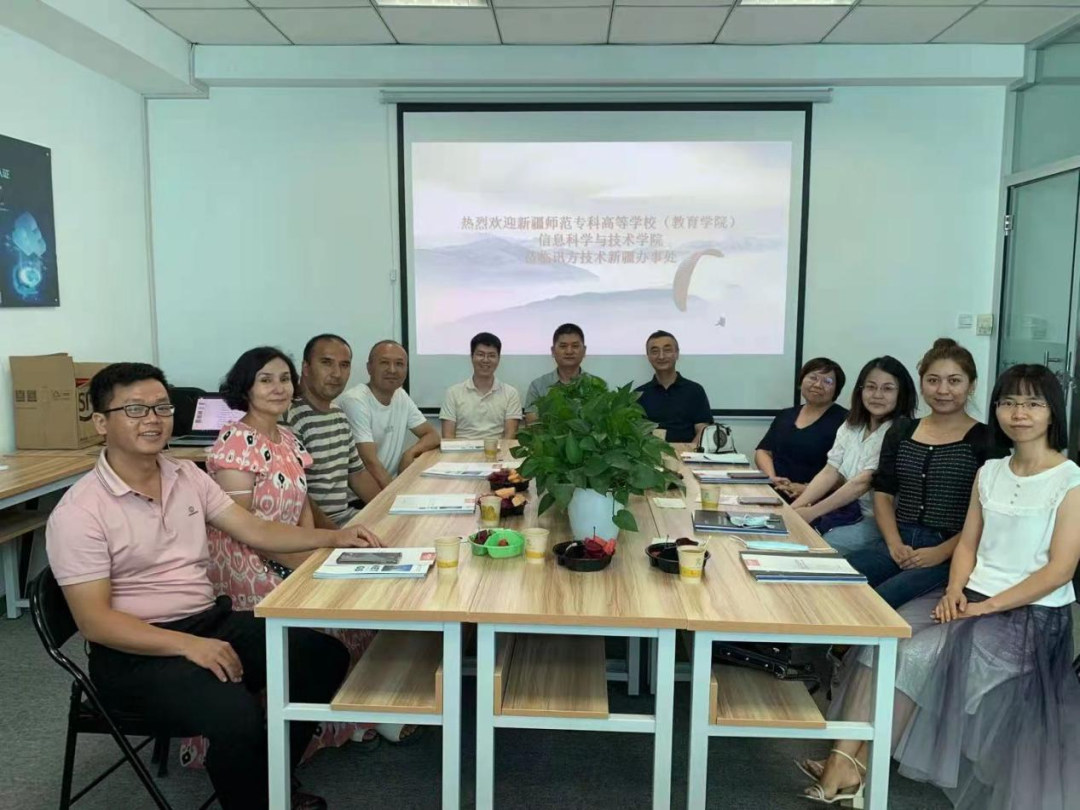 2021年8月13日,新疆师范专科高等学校(新疆教育学院)信息科学技术学院书记程洪涛、院长居来提一行莅临威九国际技术新疆办事处参观研讨。威九国际技术新疆区域总监朱江涛、市场经理郝振西、区域生态经理王光景一同进行了接待,并就产教融合师范教育向职业教育转型等问题进行了深入的研讨、探讨。